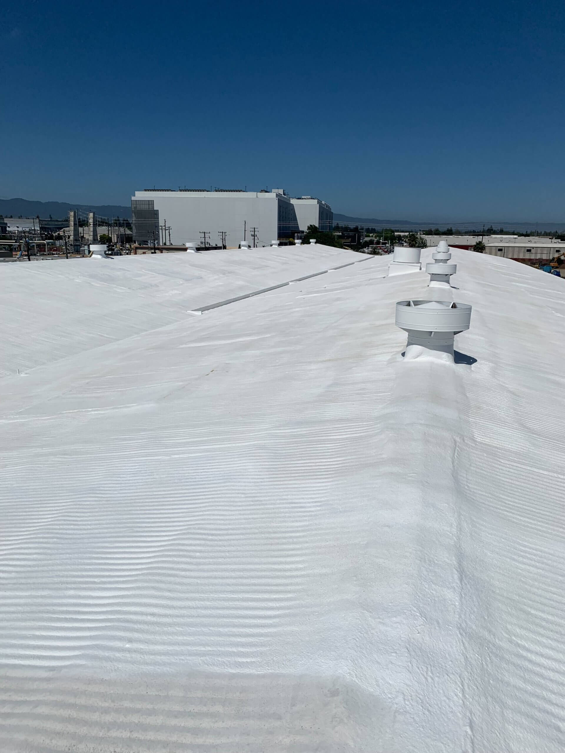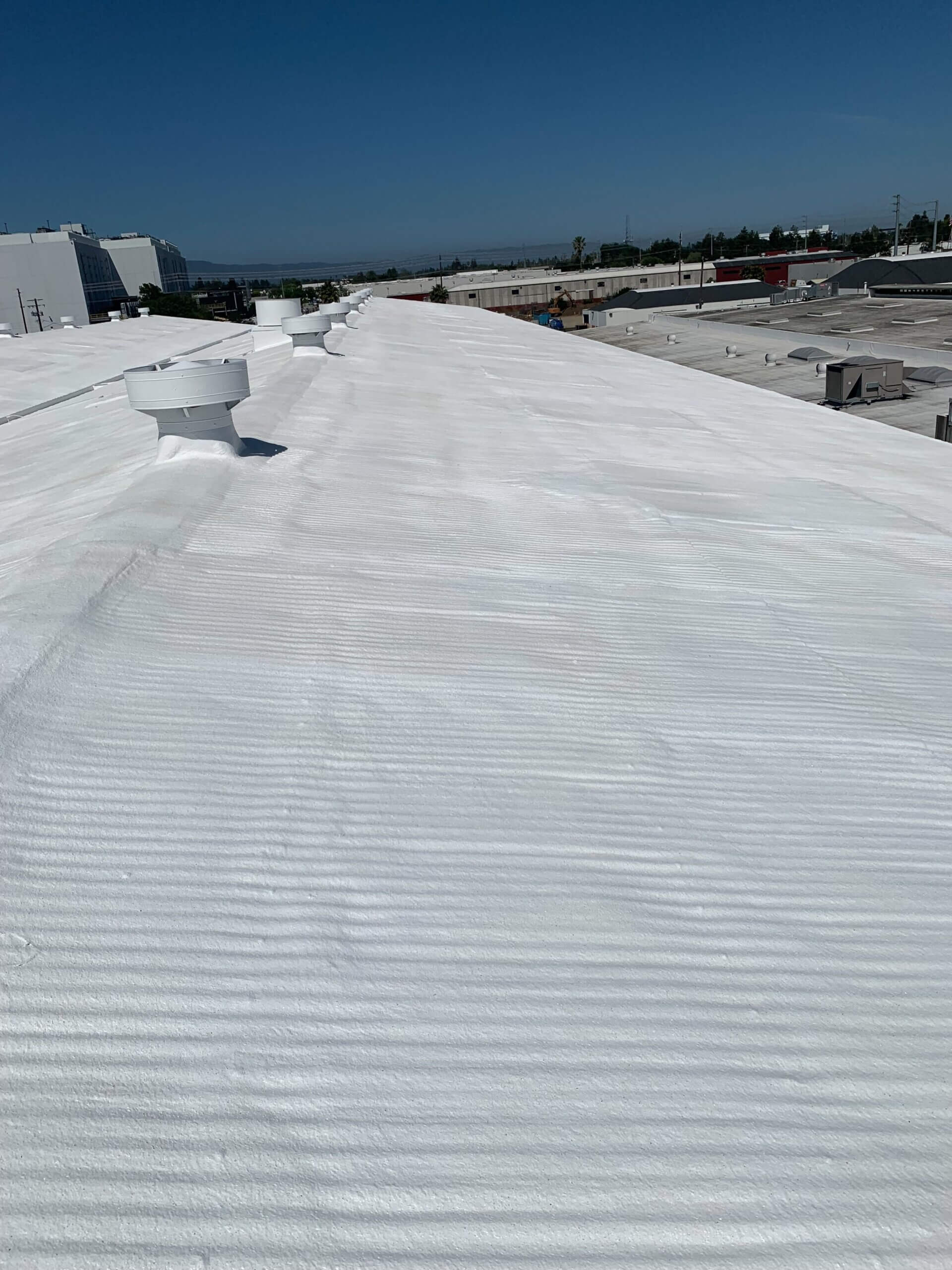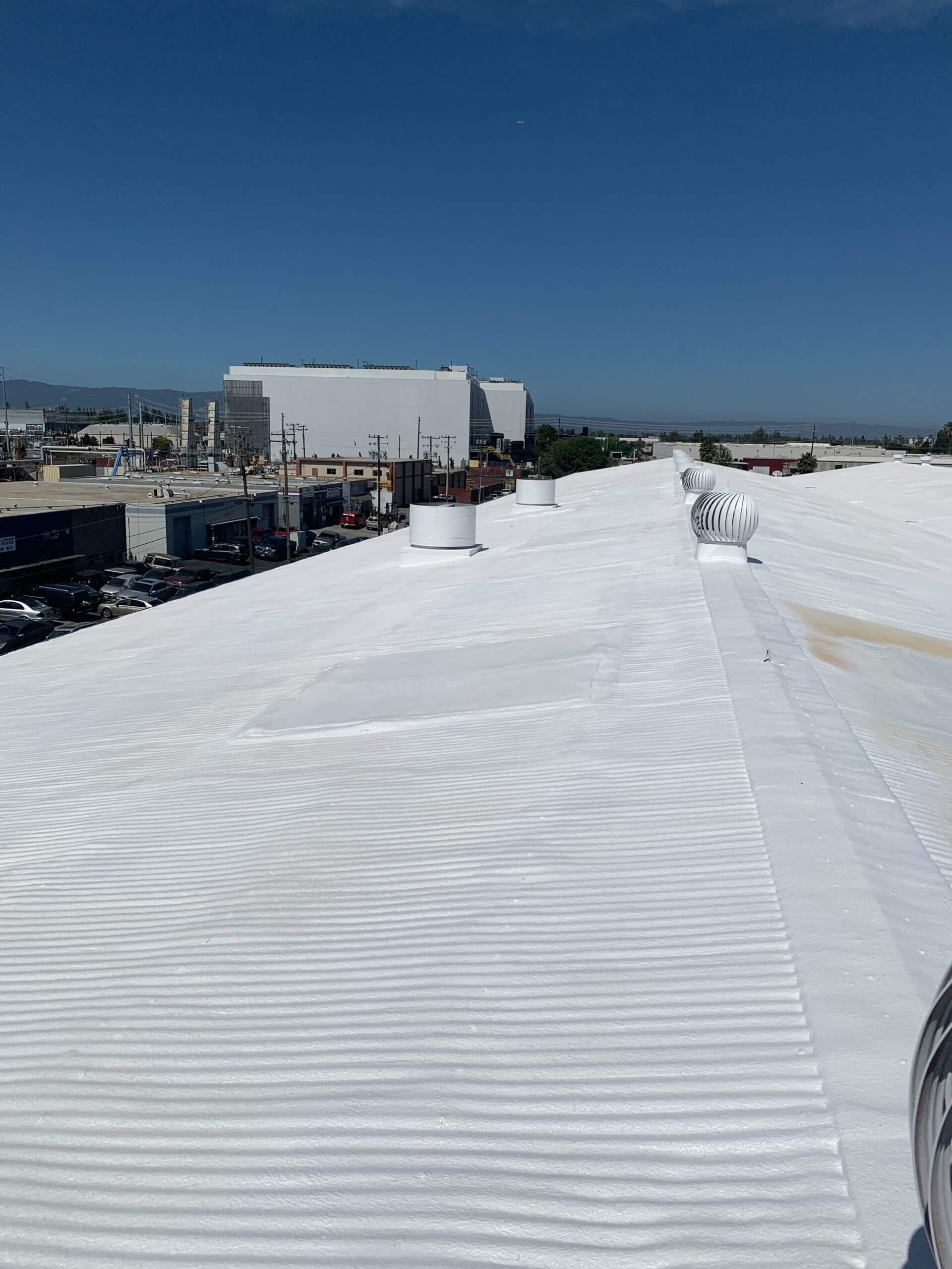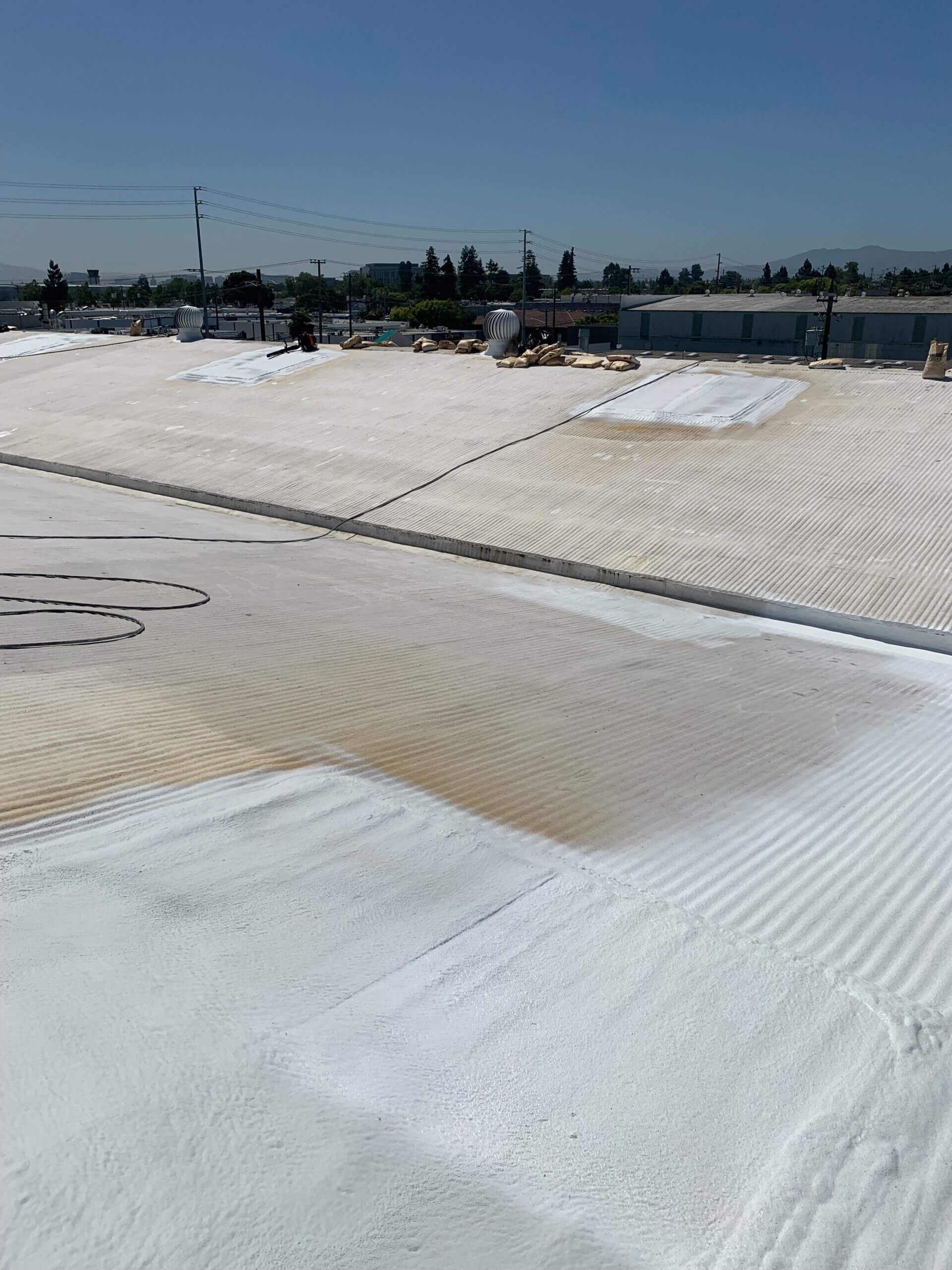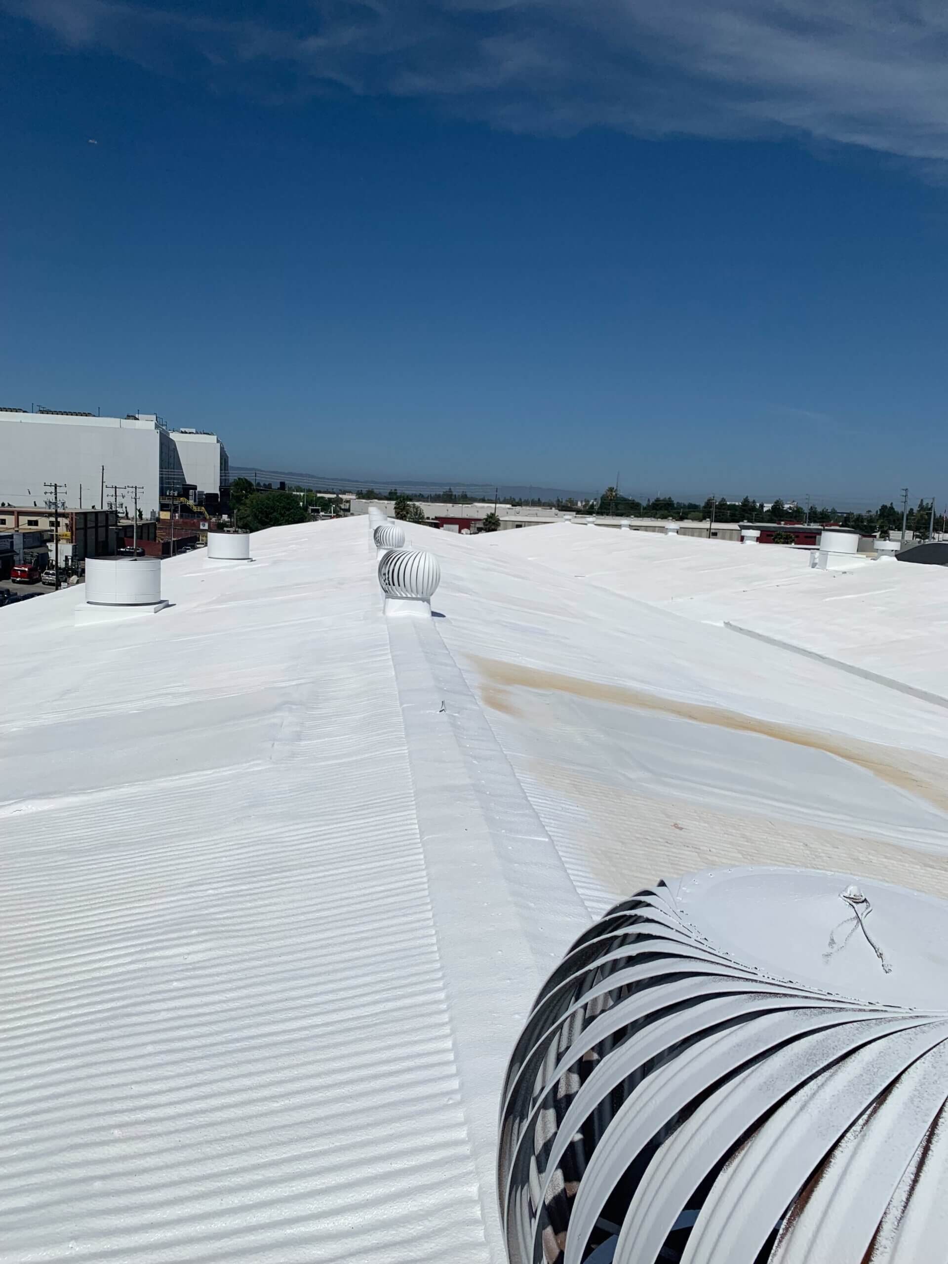 In addition to making this large roof completely watertight, foam roofing adds incredible insulation value, potentially saving up to 40% on heating and cooling costs. This is a roofing system that provides functional benefits year-round, unlike other roofing options that are often just thought of as a hope and a prayer to keep water out. For a storage facility like Camino Storage in Santa Clara, this means their customers’ belongings stay protected in a climate-controlled environment.